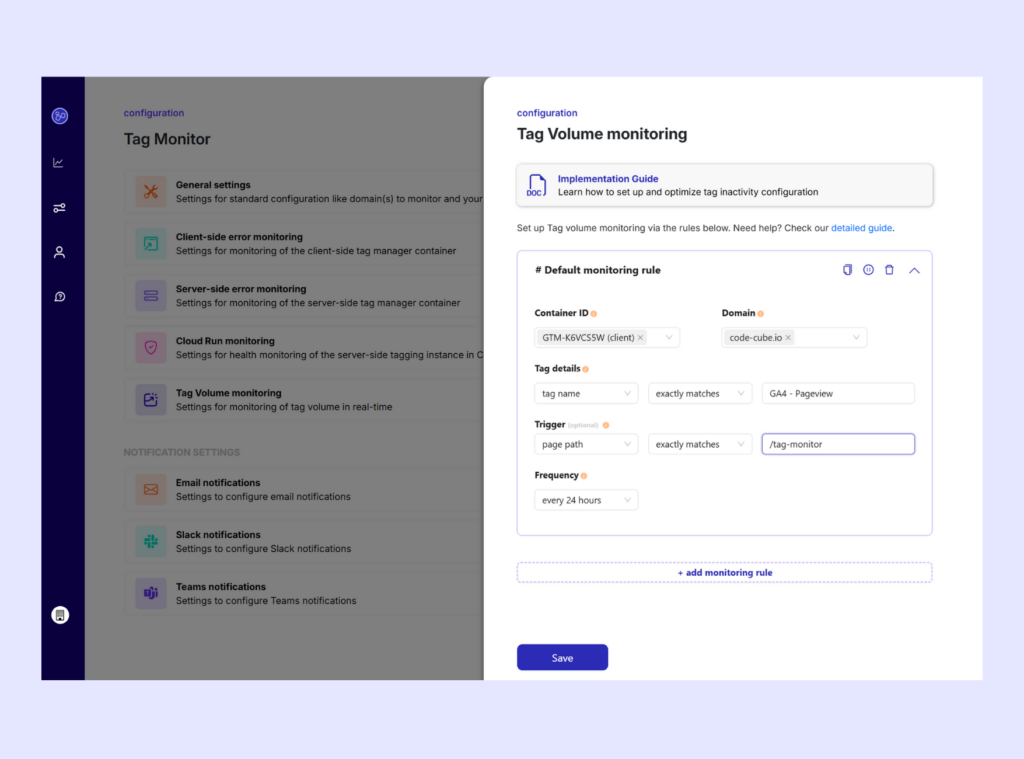 Our Tag Volume monitoring just got better. Now you can set multiple rules per domain, tag, or trigger to track your most important tags’ activity levels. Ready to try these new flexible controls?